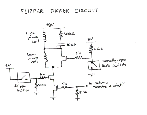 Most of my efforts this week have been more electrical focused. I found a better circuit online for pinball solenoid drivers. This circuit looks much more reliable and will allow for a faster trigger response.