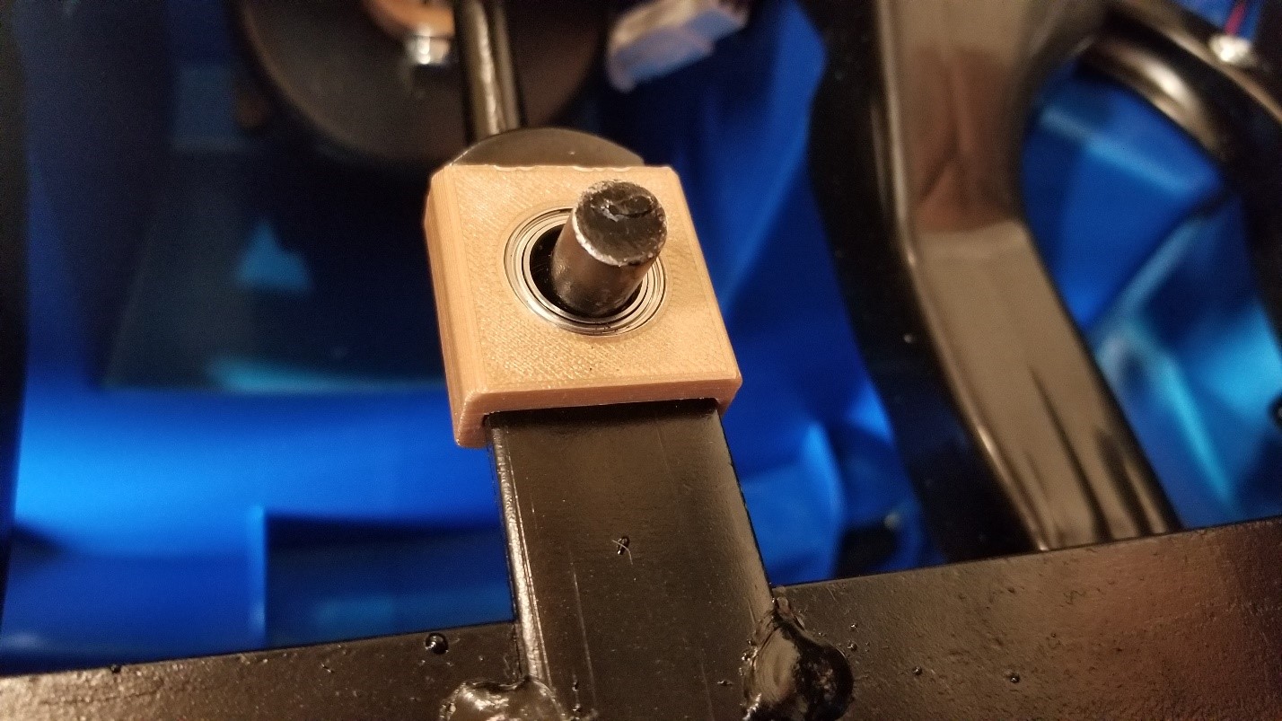 To tighten up the steering linkage even more, a bracket with two bearings installed was pressed onto the steering linkage.