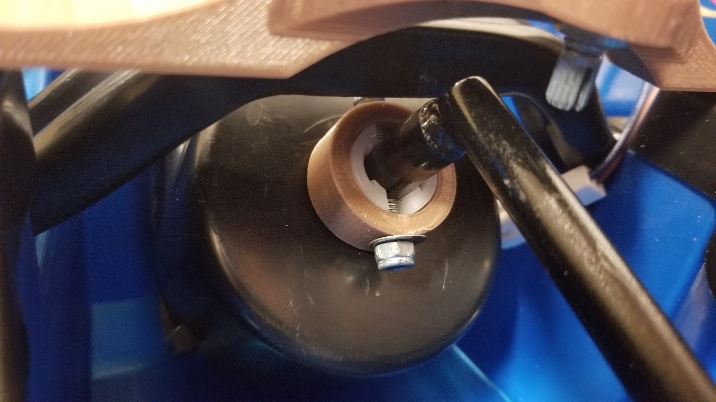 A sleeve was installed around the steering output to remove the slack from the output motor to the steering arm.