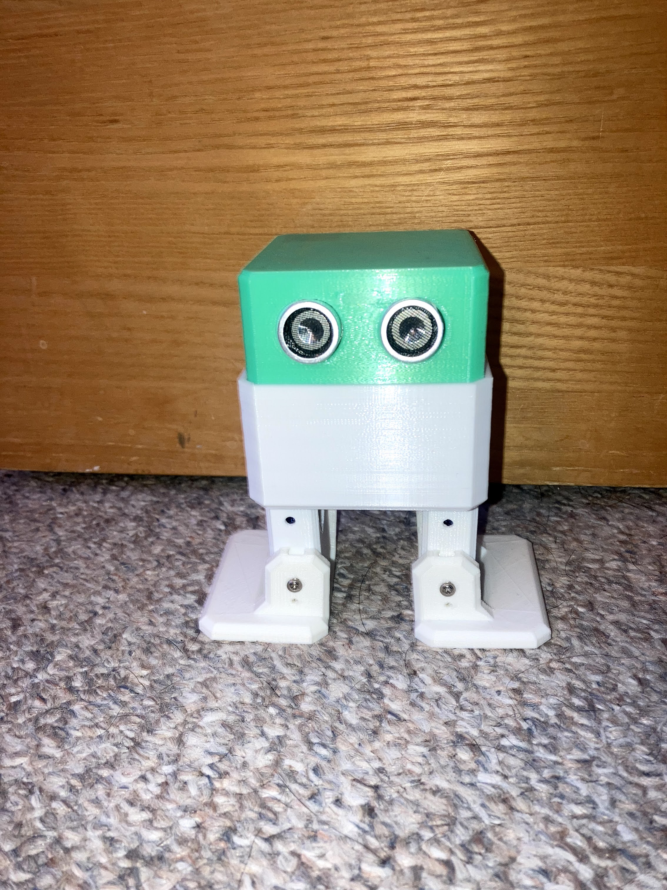 Now that the robot is fully assembled I have been using the Otto Blockly program to code the Arduino. This robot is only capable of doing simple actions like walking or dancing using servos, making it a great starter project for me. The eyes are ultrasonic sensors(the part is the HC-sr04) which can be used to make the robot perform an action when something comes within a certain range of them. I have programmed Otto to do a dance once something comes within about 10 cm of his face. This can also be used to make Otto avoid obstacles while he is walking. This project has introduced me to robotics and programming, and I look forward to working with the more complex options offered by OttoDIY.