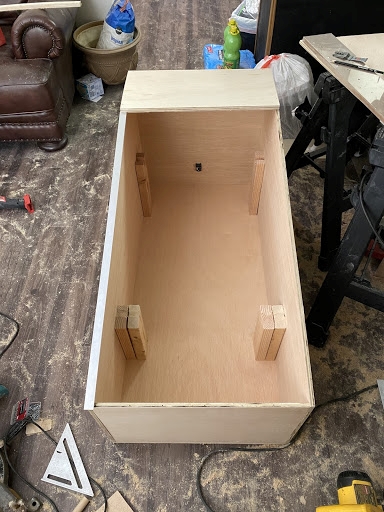 The third problem I ran into was solely on me, I had the tolerances off in my model so when I went to build the box it fit but there was no room for it to open with the metal trim that's holding in the top and any lights I would put in would have been sheared off. Luckily there was enough plywood leftover that I was able to fix this problem by increasing the width two inches.