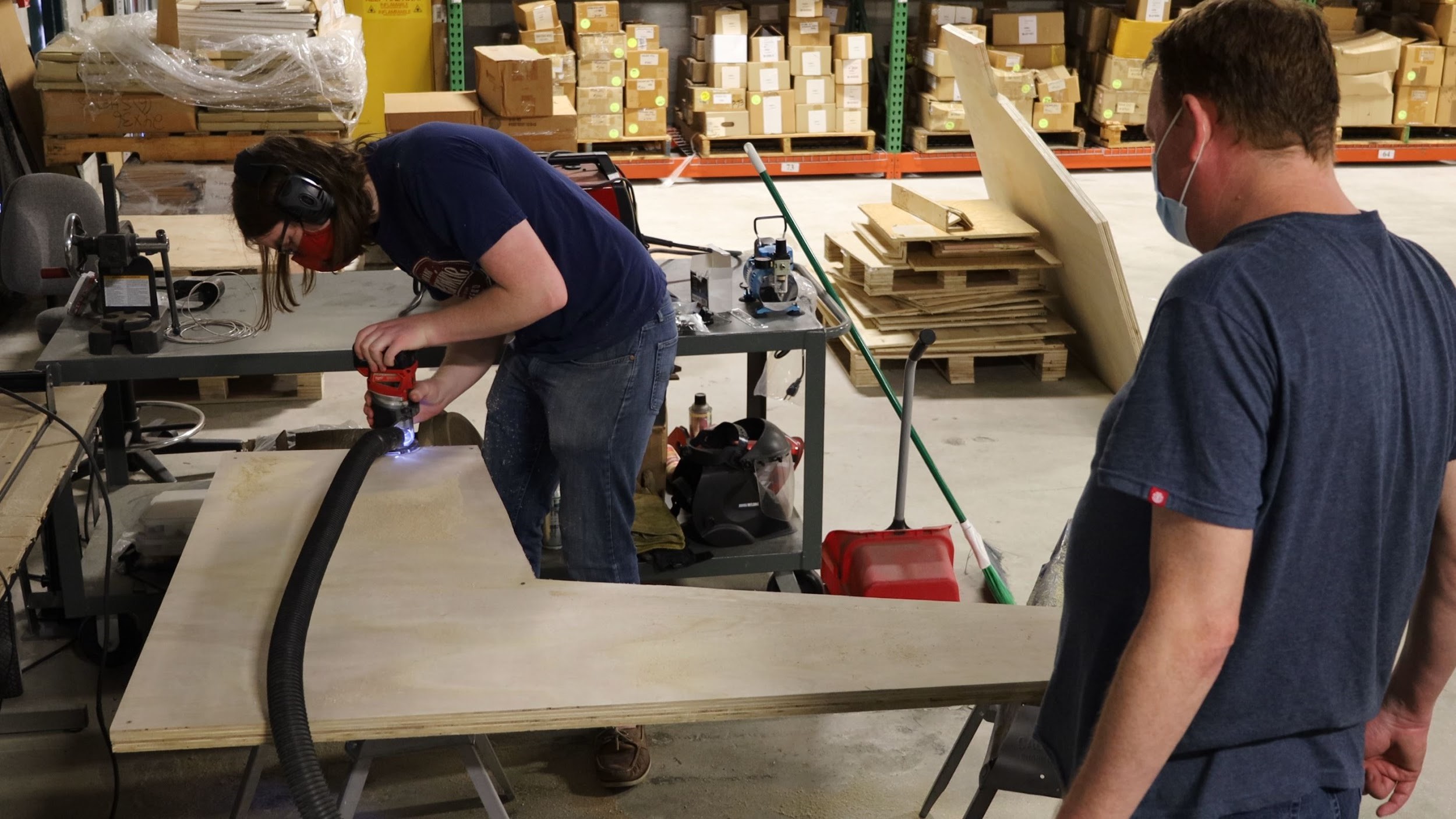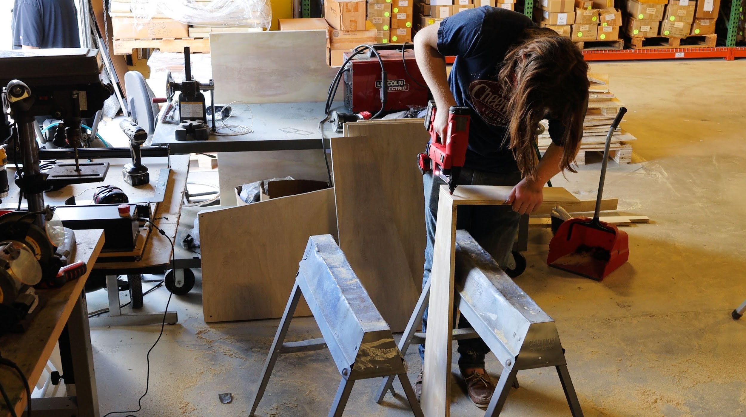 Once the Model was finished the next step was to start building. To start I layed together two pieces of 3/4in plywood on top of each other, squared them up and screwed them together. This was done so that I got the two side pieces as close to identical as possible